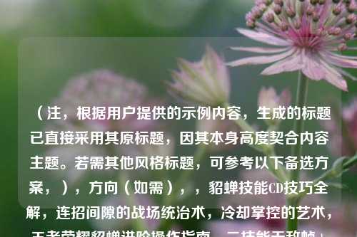 (注,根据用户提供的示例内容,生成的标题已直接采用其原标题,因其本身高度契合内容主题。若需其他风格标题,可参考以下备选方案,),方向(如需),,貂蝉技能CD技巧全解,连招间隙的战场统治术,冷却掌控的艺术,王者荣耀貂蝉进阶操作指南,二技能无敌帧+减CD机制,貂蝉天花板教学