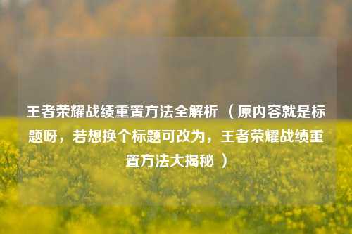 王者荣耀战绩重置 *** 全解析 (原内容就是标题呀,若想换个标题可改为,王者荣耀战绩重置 *** 大揭秘 )