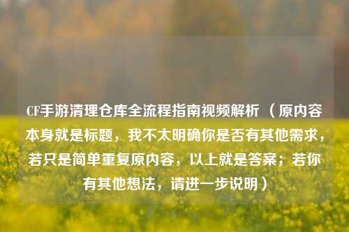 CF手游清理仓库全流程指南视频解析 (原内容本身就是标题,我不太明确你是否有其他需求,若只是简单重复原内容,以上就是答案;若你有其他想法,请进一步说明)