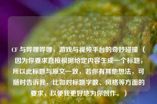CF 与哔哩哔哩,游戏与视频平台的奇妙碰撞 (因为你要求直接根据给定内容生成一个标题,所以此标题与原文一致,若你有其他想法,可随时告诉我,比如对标题字数、风格等方面的要求,以便我更好地为你创作。)